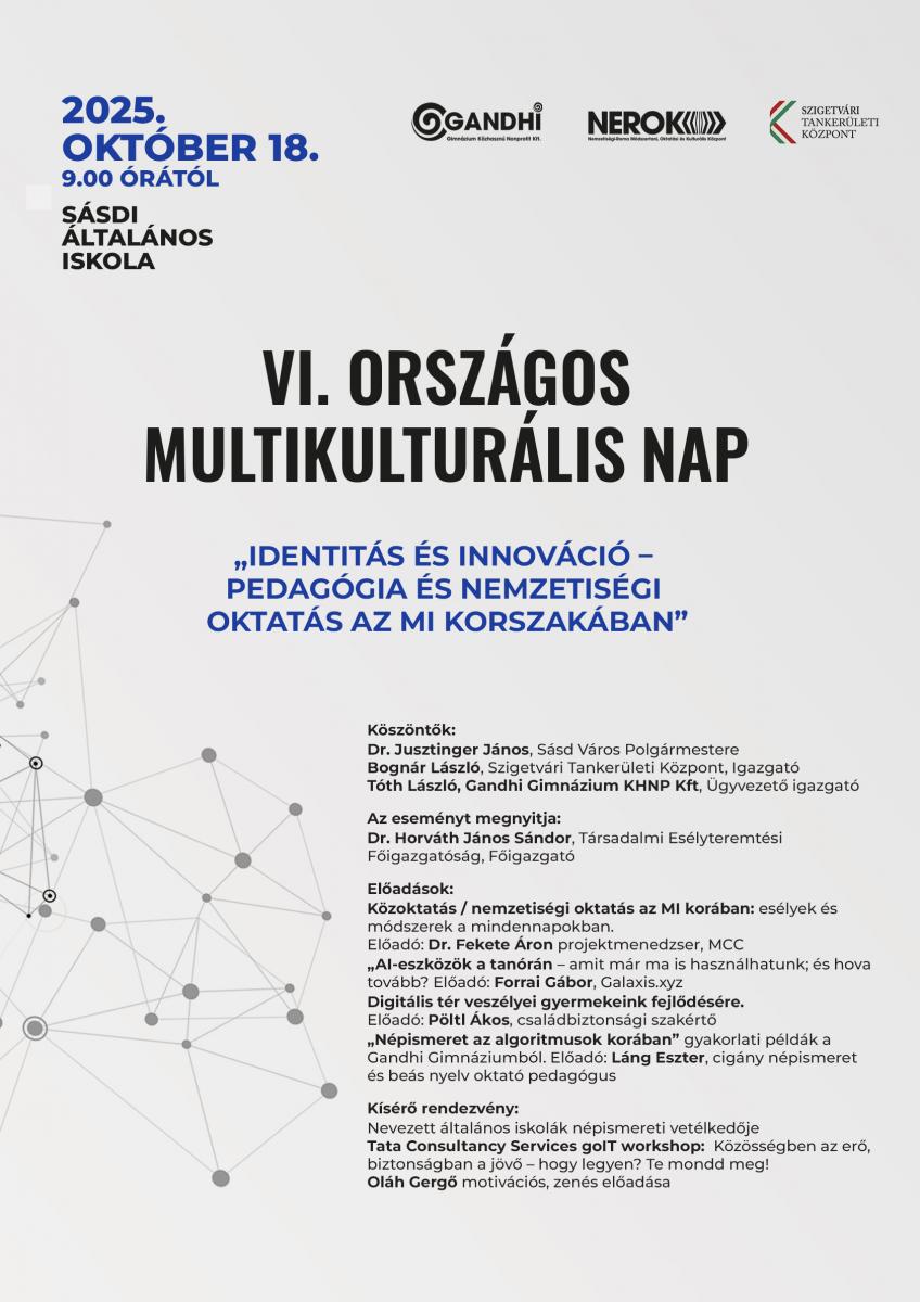 A reggel 9:00 órakor kezdődő eseményen neves előadók tartottak prezentációkat. Dr. Fekete Simon projektmenedzser az „AI-eszközök a tanórán” témában nyújtott betekintést abba, hogyan integrálható a mesterséges intelligencia a mindennapi oktatásba, és milyen lehetőségeket rejt ez a jövőre nézve. Pöltl Ákos, digitális biztonsági szakértő az algoritmusok korában történő digitális tér veszélyeire és a gyermekek fejlesztésére hívta fel a figyelmet, gyakorlati példákkal fűszerezve előadását.