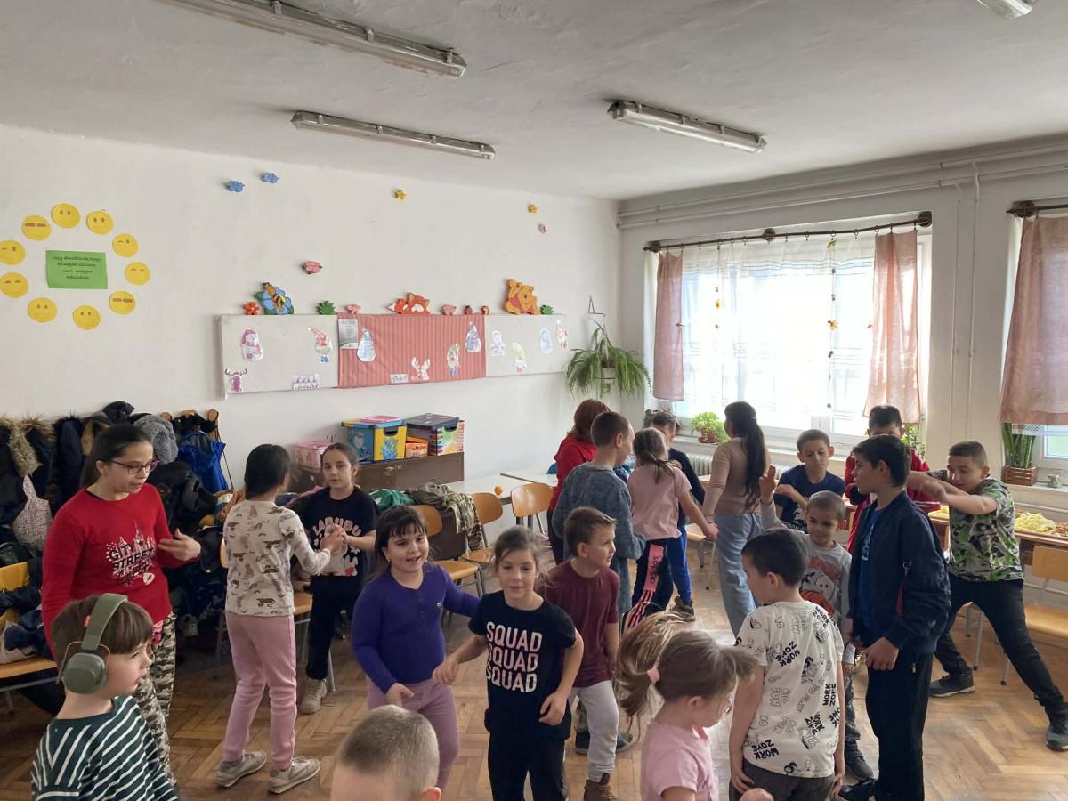 A felvonulás után nem volt megállás! A tantermek igazi táncparketté alakultak. Egy rövid, közös nyitótánccal alapoztuk meg a hangulatot, amit egy hatalmas farsangi buli követett. A legnépszerűbb slágerekre együtt ropta kicsi és nagy, sőt, még a tanári kar is bemutatott néhány emlékezetes mozdulatot.