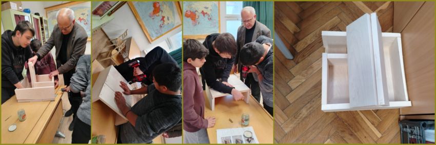 Süngarázs építése: Szülői felajánlásból származó faanyagból biztonságos téli menedéket alakítanak ki.