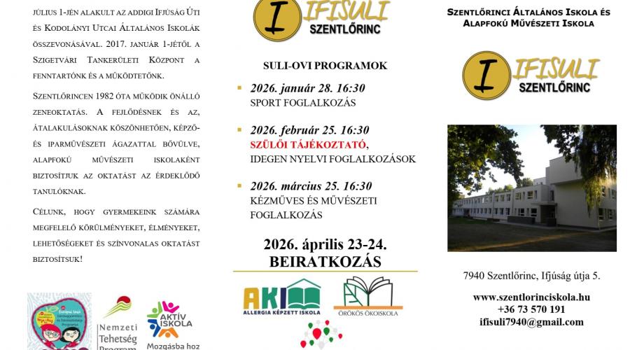 Adója 1%-át felajánlhatja a Szentlőrinci Általános Iskola Szülői Szervezete számára is: 19035316-1-02