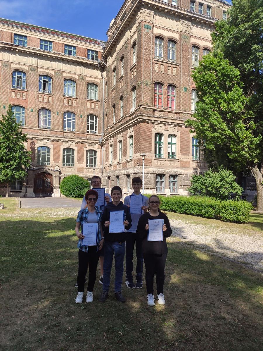 A döntőre június 2-án Budapestre utaztunk a Műszaki Egyetemre és 10 állomáson különböző feladatokat kaptak, többek között az elkészített poszter bemutatása, kísérletek elvégzése, kémhatás vizsgálata, eszközök felismerése szerepelt. A csapat szép teljesítményét különdíjjal jutalmazták. A csapat tagjai: Kovács Réka, Kelemen Bence, Kővári Benjámin, Szabó Áron. Felkészítő tanár Duliné Bulla Edit volt. Gratulálunk a szép eredményhez!
