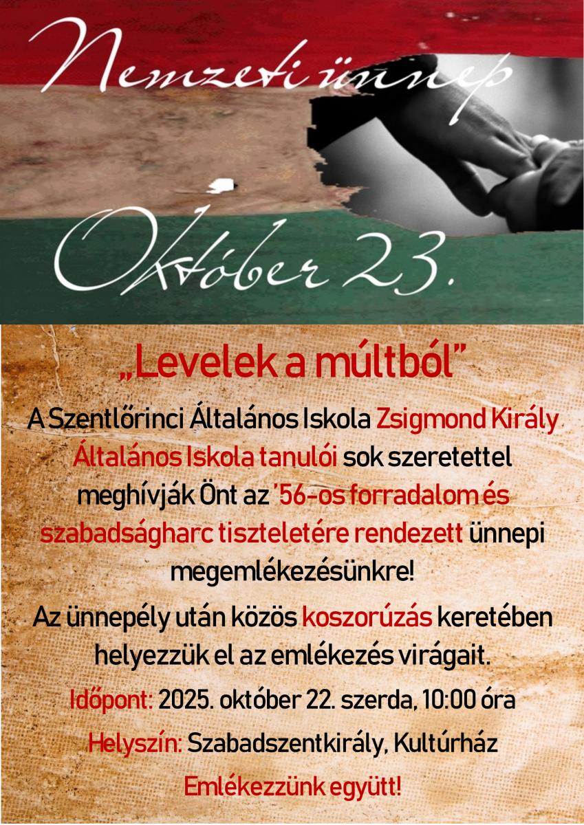 Iskolánk ebben az évben is műsorral emlékezett meg az 1956-os forradalom évfordulójáról. Az igen színvonalas előadásban felsős diákjaink (Baranyai Natália, Elek Nimród, Herczeg Levente, Orsós Henrietta, Pápai Amanda, Pápai Brigitta és Vogl Jázmin) szerepeltek. A gyerekeket Szücs Katalin készítette fel. Alsós diákjaink kórusukkal segítették a fellépést, Bakné Szabó Judit felkészítése mellett. Köszönjük!