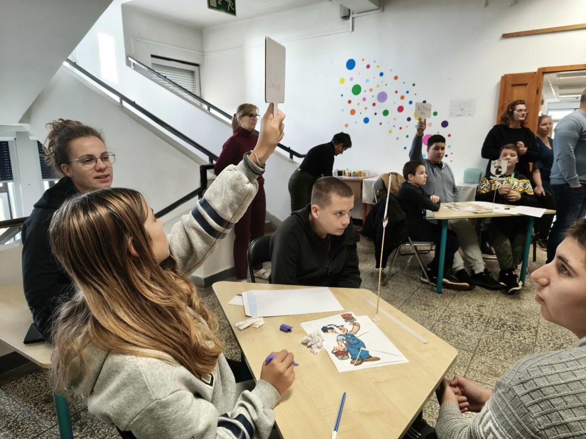 A tanulók csapatokban dolgoztak, ahol négy borítékból kellett látatlanban szereplőket,